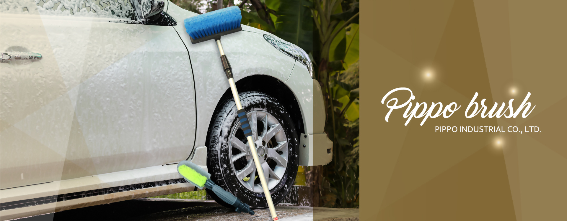 10"W flow-thru car washing brush w/ telecopic pole; wheel brush; detail brush; scrubbing brush; flow-thru car brush